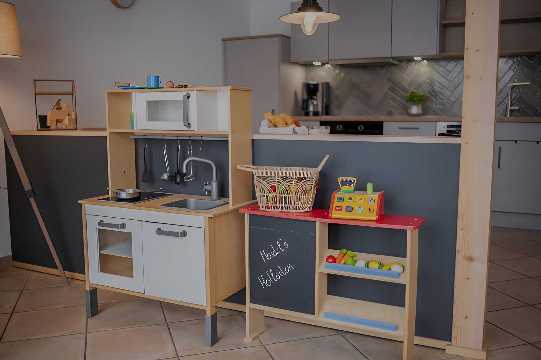 Euch stehen 3 geräumige Schlafräume und ein Wohn- /Essraum mit Küche zur Verfügung. Die Küche ist mit einem Geschirrspüler, Kühlschrank mit Gefrierfach, Backofen und Mikrowelle ausgestattet. Einen Fernseher mit Sat und viele verschiedene Spiele findet Ihr im Wohnraum. WLAN ist inklusive und wir bieten Euch auch gerne einen täglichen Brötchenservice an. Außerdem haben wir für Euch ein Bad mit Dusche und Badewanne, WC und Fön sowie zusätzlich ein separates Gäste-WC. Baby- und Kleinkindausstattung mit Kinderbett ist für eure Kleinen vorhanden. Auf der eigenen Terrasse sitzt Ihr inmitten der Allgäuer Voralpen mit Blick in die Berge.